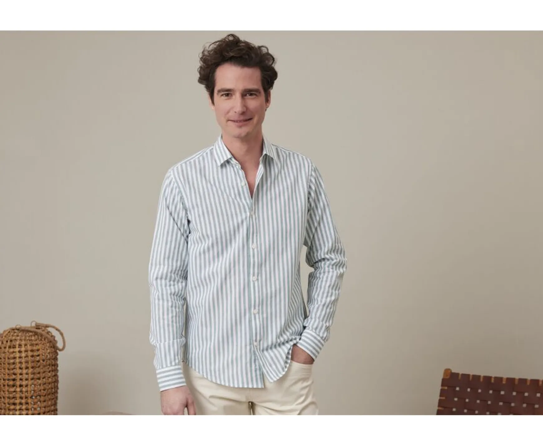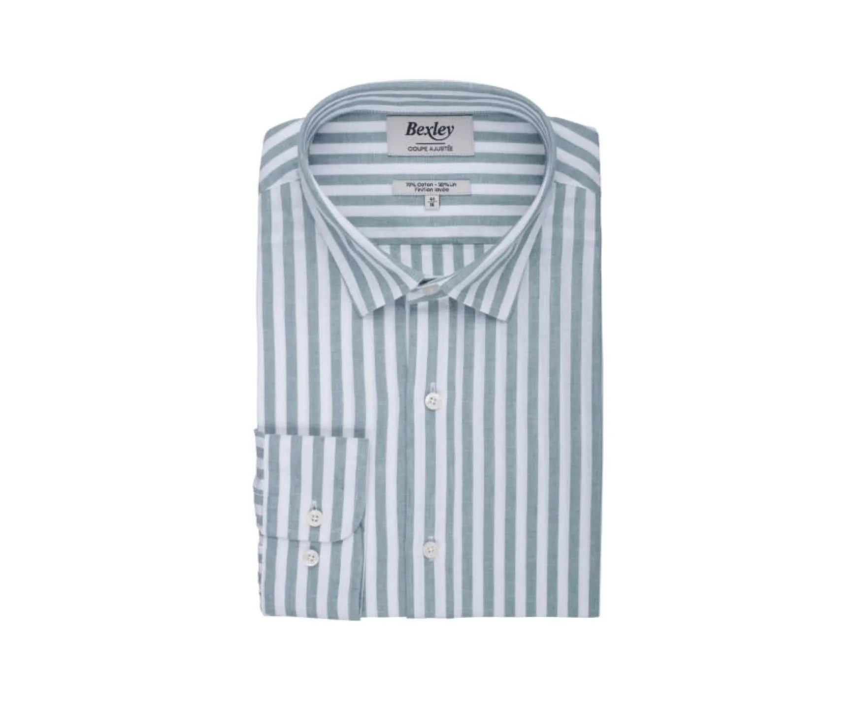 Be the first to review “Bexley | Green & White Striped Cotton Linen Shirt Simonin Vert Et Blanc”