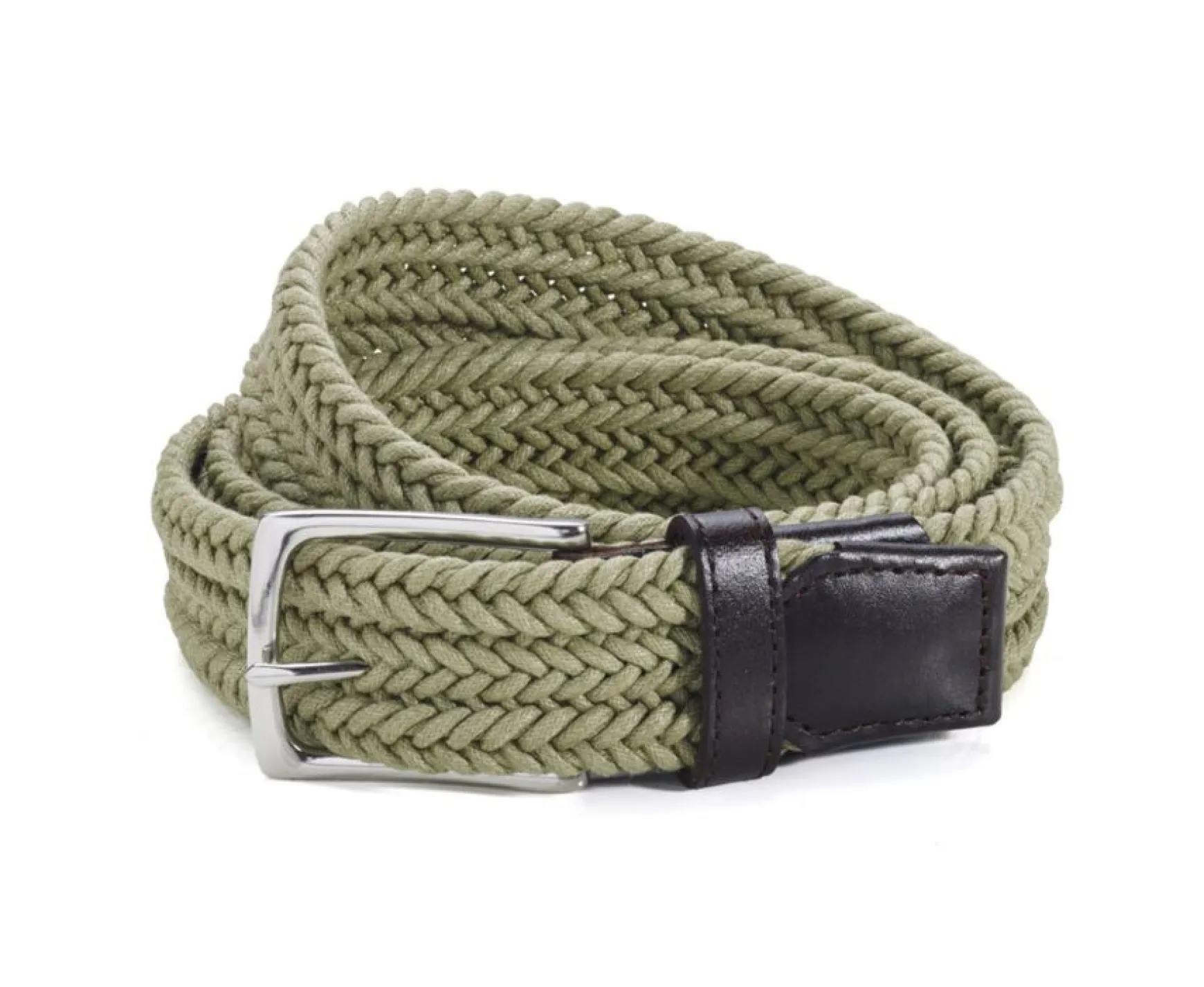 Thin Smooth Cotton Braided Belt. Closed With A Square Shaped Solid Brass Buckle, With A Square Shaped Solid Brass Buckle, With Buckle Base, Ending And Dark Borwn Single Loop.Silver Buckle. Belt Width 30Mm.A Belt To Give A Casual Twist To Any Pair Of Trousers.