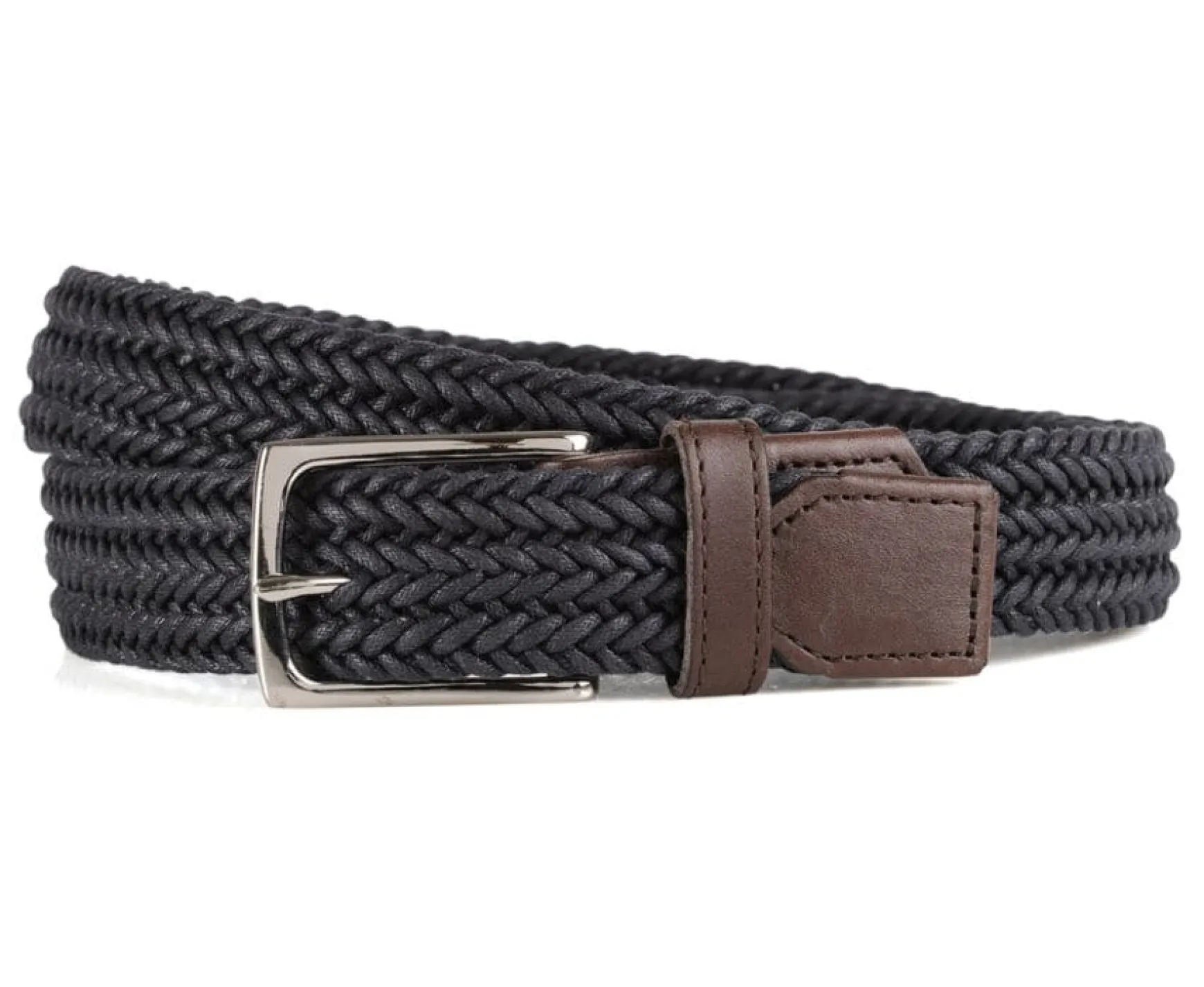 Thin Smooth Cotton Braided Belt. Closed With A Square Shaped Solid Brass Buckle, With A Single Leather Loop.Silver Buckle. Belt Width 30Mm.A Belt To Give A Casual Twist To Any Pair Of Trousers.