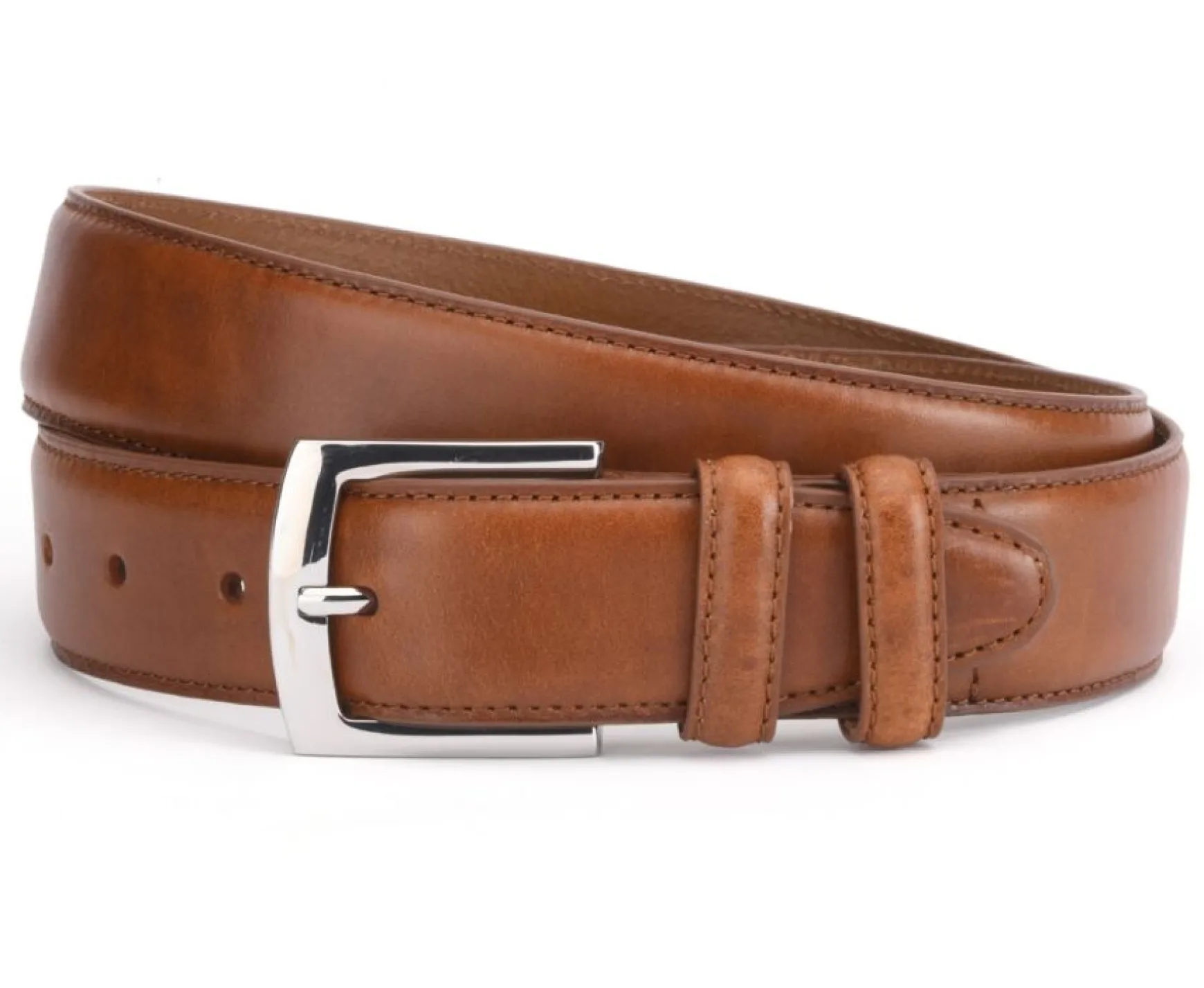 Smooth Cow Leather Or Velvet Belt With A Leather Lining. Closed With A Slightly Rounded Square Shaped Solid Brass Buckle, With Two Leather Loops.Silver Coloured Buckle. Belt Width 35 Mm With Refined Stitching.A Chic Must-Have Accessory.