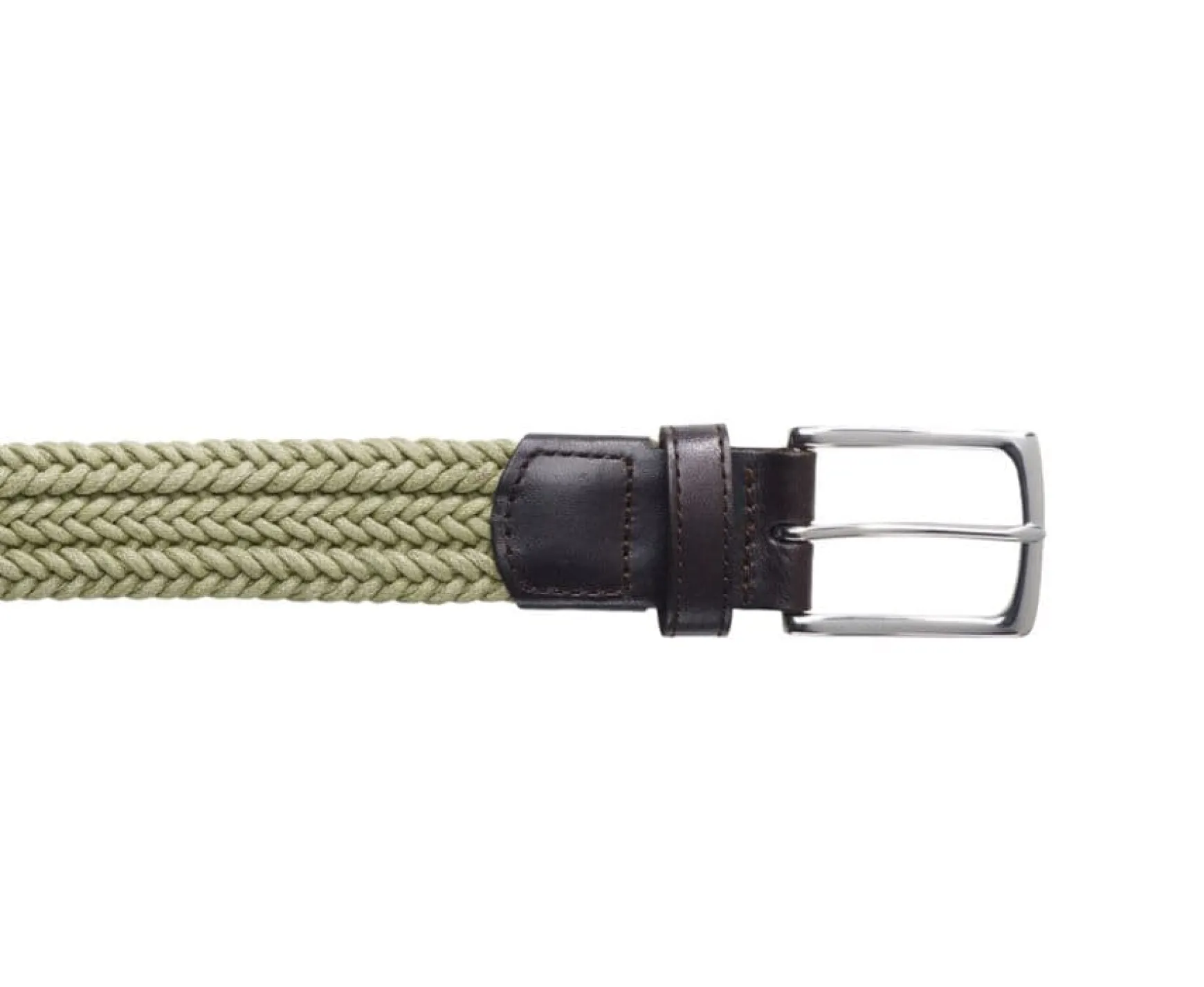 Thin Smooth Cotton Braided Belt. Closed With A Square Shaped Solid Brass Buckle, With A Square Shaped Solid Brass Buckle, With Buckle Base, Ending And Dark Borwn Single Loop.Silver Buckle. Belt Width 30Mm.A Belt To Give A Casual Twist To Any Pair Of Trousers.